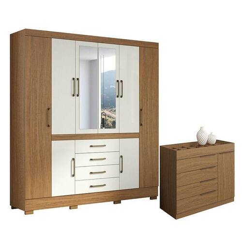 Cômoda Sevilha Atacama e Guarda Roupa Casal Nápole 2045149 Atacama Off White - Aramóveis
