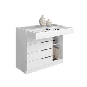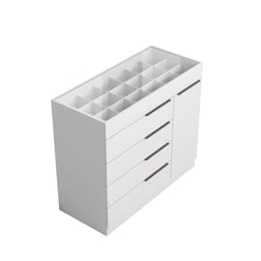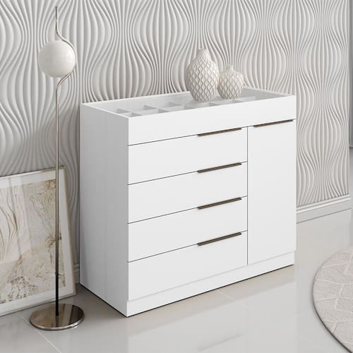 Características: Estrutura em MDP Pintura semi-brilho 01 Porta articulada com dobradiças metálicas 05 Gavetas com corrediças metálicas Porta jóias Puxadores de Plástico