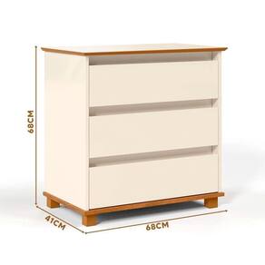 Cômoda Slim Taj 3 Gavetas Ej Móveis Off White/freijó Ideal para complementar e ajudar a manter o ambiente sempre organizado, a Comoda Slim com 3 Gavetas de corredicas telescopicas da Ej Moveis esbanja modernidade, podendo ser colocada no quarto, para complementar o guarda roupas, na sala ou escritorio, para organizar os itens do dia a dia. Os pes em mdf, tampo com borda laqueada inida em mdf e a pintura ultravioleta sao diferenciais do produto. Caracteristicas: Marca: Ej Moveis Modelo: Taj Gavetas: 3 Corredicas telescopicas Pes em MDF
