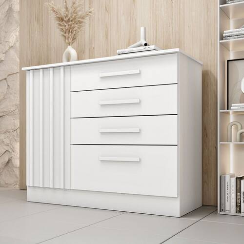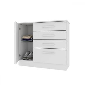O(a) Cômoda Sobral 1 Porta 4 Gavetas Ripado Neve - Pnr Móveis é produzido em MDP na escala de brilho Fosco, e possui um grau de dificuldade de montagem: Médio.