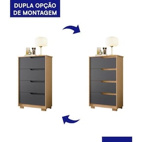 A Cômoda Sole 4 Gavetas é a escolha perfeita para quem busca praticidade, elegância e funcionalidade. Produzida em MDP com pintura UV, oferece resistência e durabilidade para o dia a dia. Conta com 4 gavetas equipadas com corrediças telescópicas, que proporcionam deslizamento suave e , além de reforço estrutural no fundo das gavetas para maior estabilidade. Com puxadores em cava e pés em ABS, o design é moderno e mainimalista. A versatilidade na montagem, com dupla opção de cor, permite personalizar o móvel de acordo com o seu ambiente. Com amplo espaço interno, é ideal para manter tudo organizado com estilo.