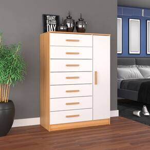 O(a) Cômoda Solis 1 Porta 7 Gavetas Branco/Cinamomo - Pnr Móveis é produzido em MDP na escala de brilho Semi-Fosco, e possui um grau de dificuldade de montagem: Médio.