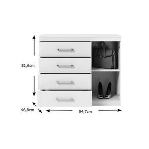 Quantidade de Portas - 1 Porta de Abrir Tipo de Corrediça - c/ Corrediças Metálicas Quantidade de Gavetas - 4 Gavetas Tipo dos Pés - Pés Opcionais Diferenciais das Prateleiras - Prateleira Removível Quantidade de Prateleiras - 1 Prateleira