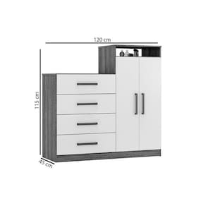 Material das Portas - Portas em MDP Tipo de Dobradiças - Dobradiças Metálicas Quantidade de Portas - 2 Portas de Abrir Material das Gavetas - Gavetas em MDP Tipo de Corrediça - c/ Corrediças Metálicas Quantidade de Gavetas - 4 Gavetas Material das Prateleiras - Prateleiras em MDP Quantidade de Prateleiras - 2 Quantidade de Nichos - 1 Nicho