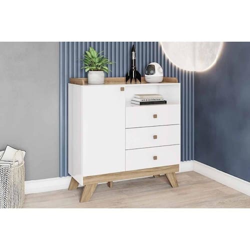 Cômoda de Quarto Confete c/ 1 Porta e 3 Gavetas Branco/Jequitiba - Henn Marca: HENN