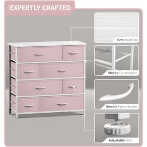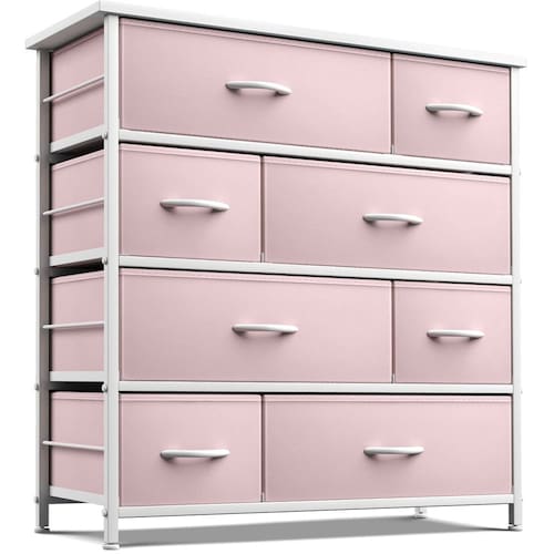 - Cômoda com 8 gavetas (rosa) — o estilo encontra a função com esta cômoda, completa com uma superfície de madeira e gavetas de armazenamento coloridas — Combina lindamente com a coleção de móveis dobráveis Sorbus