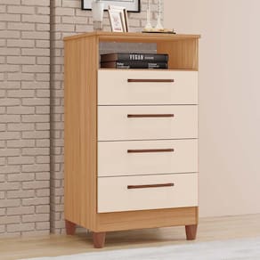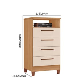 Apresentamos a Cômoda Star! A cômoda Star possui um design moderno e funcional, com um deck superior para itens decorativos ou utilitários. Equipada com quatro gavetas espaçosas, oferece amplo armazenamento. As gavetas deslizam suavemente graças às corrediças telescópicas, garantindo praticidade e durabilidade. Ideal para diversos ambientes, combina estilo e funcionalidade.