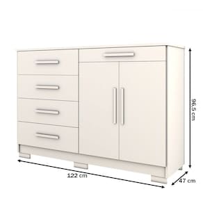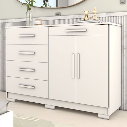 O(a) Cômoda Tailândia 2 Portas 5 Gavetas Branco - Loja é produzido em MDP na escala de brilho Brilho, e possui um grau de dificuldade de montagem: Médio.