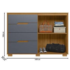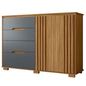 Começou a procurar móveis para seu quarto? Então apresentamos para você esta bela cômoda da linha Texas. Composta por duas portas com detalhes ripados adicionam um toque de requinte. Contando com quatro gavetas espaçosas equipadas com corrediças telescópicas, garante um deslizamento mais suave e seguro. Para completar, os pés em PVC garantem mais estabilidade e facilita na limpeza. Fabricado pela Moval, é desenvolvido em 100% MDP, sendo a escolha perfeita para quem deseja sofisticação e praticidade na organização quarto, aproveite!