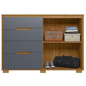Começou a procurar móveis para seu quarto? Então apresentamos para você esta bela cômoda da linha Texas. Composta por duas portas com detalhes ripados adicionam um toque de requinte. Contando com quatro gavetas espaçosas equipadas com corrediças telescópicas, garante um deslizamento mais suave e seguro. Para completar, os pés em PVC garantem mais estabilidade e facilita na limpeza. Fabricado pela Moval, é desenvolvido em 100% MDP, sendo a escolha perfeita para quem deseja sofisticação e praticidade na organização quarto, aproveite!