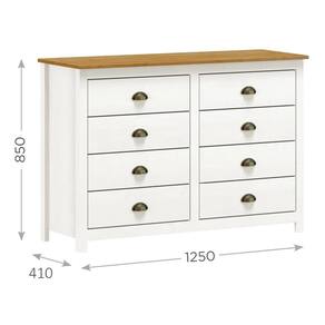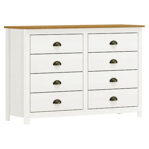 A Cômoda Topázio combina beleza e funcionalidade em uma peça robusta e charmosa. Com estrutura em madeira maciça de pinus de reflorestamento e acabamento em pintura acetinada PU e UV, oferece durabilidade e um visual sofisticado. Possui 8 gavetas espaçosas com corrediças telescópicas, puxadores metálicos em ouro envelhecido e pés alongados em madeira maciça, garantindo praticidade e um toque clássico à decoração. Ideal para quem busca organização com estilo.