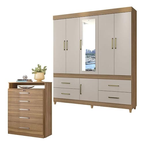Cômoda Triunfo e Guarda Roupa Casal Guarujá Amêndola Off White - Demóbile