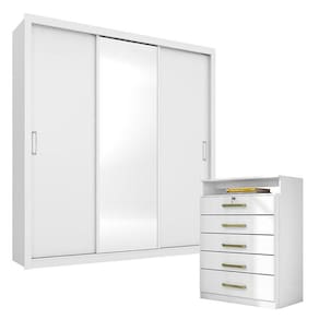 Cômoda Triunfo e Guarda Roupa Casal Residence Branco - Demóbile