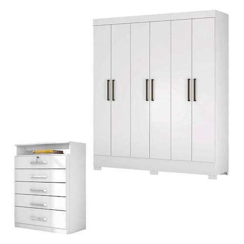 Cômoda Triunfo e Guarda Roupa Casal Verso Branco - Demóbile