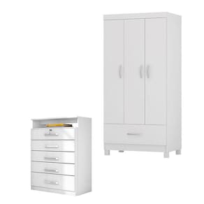 Cômoda Triunfo e Guarda Roupa Solteiro Prince Branco - Demóbile
