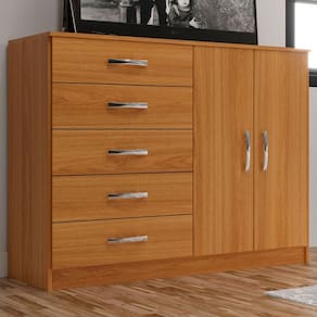 O(a) Cômoda Tulum 2 Portas 5 Gavetas Cinamomo - Loja é produzido em MDP na escala de brilho Fosco, e possui um grau de dificuldade de montagem: Médio.