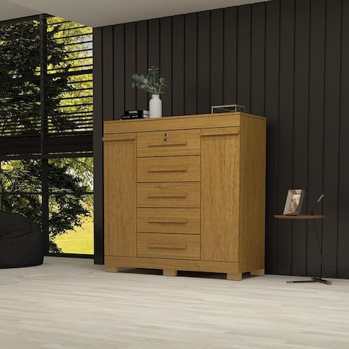 Transforme seu espaço com a cômoda Turquia, feita exclusivamente em MDF de alta qualidade. Com 5 gavetas espaçosas, incluindo uma com trancapara seus itens mais preciosos, e dois sapateiros integrados, esta cômoda oferece praticidade e elegância em cada detalhe. Organize seus pertences com estilo e segurança, graças ao design pensado para otimizar seu ambiente. Além disso, os puxadores em MDF revestido adicionam um toque de sofisticação. Experimente a funcionalidade e o charme da cômoda Turquia em sua casa.