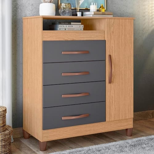 Dispõe de 4 gavetas, com profundidade excelente para acomodar todas as suas roupas.