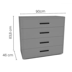 O(a) Cômoda Valência 4 Gavetas Branco - Politorno é produzido em MDF e MDP na escala de brilho Semi-Fosco, e possui um grau de dificuldade de montagem: Médio.