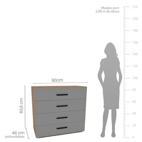 Cômoda Valência 4 Gavetas Freijó Cinza Politorno Móveis - Cinza | Freijó
