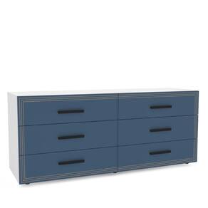 Cômoda Valência 6 Gavetas Branco Azul Politorno Móveis - Branco | Azul