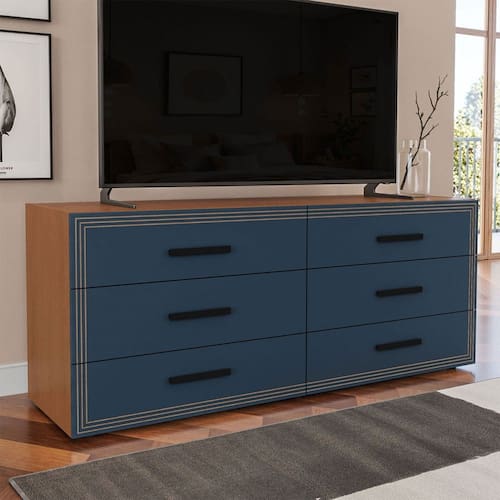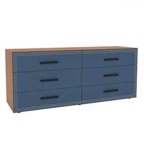 O(a) Cômoda Valência 6 Gavetas Freijó/Azul - Politorno é produzido em MDF e MDP na escala de brilho Semi-Fosco, e possui um grau de dificuldade de montagem: Médio.