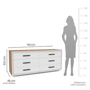 Cômoda Valência 6 Gavetas Freijó Branco Politorno Móveis - Freijó | Branco