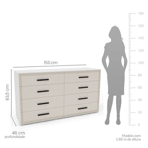 Cômoda Valência 8 Gavetas Branco Creme Politorno Móveis - Branco | Bege