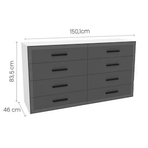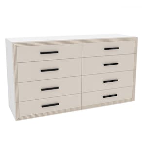 O(a) Cômoda Valência 8 Gavetas Branco/Creme - Politorno é produzido em MDF e MDP na escala de brilho Semi-Fosco, e possui um grau de dificuldade de montagem: Médio.