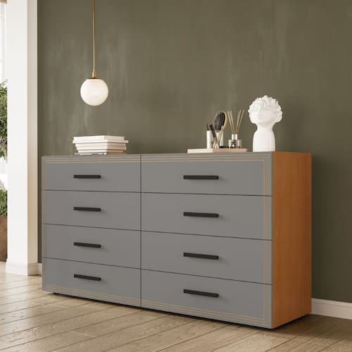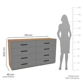 Cômoda Valência 8 Gavetas Freijó Cinza Politorno Móveis - Cinza | Freijó