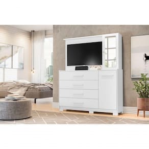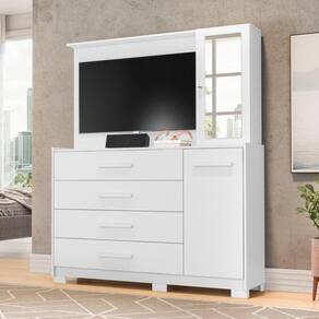 Cômoda Veneza Branco Com Espelho A Cômoda é o complemento ideal para o seu quarto e para você que procura um móvel com design moderno para seu quarto.