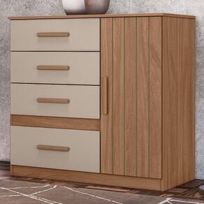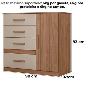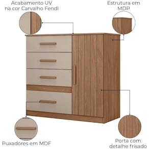 A Cômoda Vênus combina praticidade e design moderno. Estrutura em MDP (porta e tampo 15 mm/ base e fundo 12 mm) com acabamento em pintura UV. Composta por 4 gavetas (sendo 1 gavetão) equipadas com corrediças metálicas, 1 porta equipada com dobradiças metálicas, 1 prateleira interna (ajustavel ou removível), puxadores em MDF e sapatas niveladoras. Este produto será entregue em 01 volume.