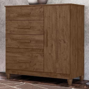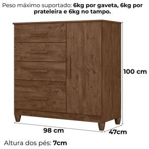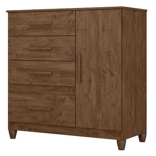 A Cômoda Vênus combina praticidade e design moderno. Estrutura em MDP (porta e tampo 15 mm/ base e fundo 12 mm) com acabamento em pintura UV. Composta por 4 gavetas (sendo 1 gavetão) equipadas com corrediças metálicas, 1 porta equipada com dobradiças metálicas, 1 prateleira interna (ajustável ou removível), puxadores em MDF e pés em PVC. Este produto será entregue em 02 volumes.