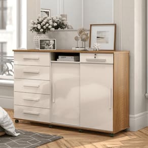 PESO DO PRODUTO COM EMBALAGEM (KG): 54 | LARGURA DO PRODUTO COM EMBALAGEM (CM): 55 | GARANTIA DO FABRICANTE: 3 | ESTADO DE ORIGEM: SP | MARCA: CASAH | ALTURA DO PRODUTO COM EMBALAGEM (CM): 28 | COMPRIMENTO DO PRODUTO (CM): 54 | COMPRIMENTO DO PRODUTO COM EMBALAGEM (CM): 186 | PRODUTO: COMODA | INSTRUÃ?Ã-ES/CUIDADOS: Limpar com pano macio e seco, nÃo utilizar produtos abrasivos. | PESO DO PRODUTO (KG): 100 | LARGURA DO PRODUTO (CM): 176 | QUANTIDADE DE PORTAS: 2 | ALTURA DO PRODUTO (CM): 123 | QUANTIDADE DE PRATELEIRAS: 2 | CORES DO PRODUTO (FILTRO DE CORES): FREIJO/OFF WHITE | QUANTIDADE DE CAIXAS NA EMBALAGEM: 3 | QUANTIDADE DE GAVETAS: 6 | DESCRIÃ?Ã?O DO TAMANHO: 123X176X54 | MATERIAL PRINCIPAL: MDF | COR PREDOMINANTE: FREIJO/OFF WHITE | PRODUTO PRECISA DE MONTAGEM?: Sim, a montagem à facil mas sugerimos a contrataÃÃo de um montador profissional para a montagem do produto. NÃo nos responsabilizamos por danos causados no ato da montagem.