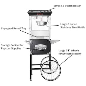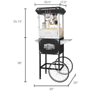 Componentes Incluídos Máquina de pipoca estilo antigo Great Northern Popcorn 6005 Lincoln Full Popper completa com carrinho e chaleira de 0,28 gramas