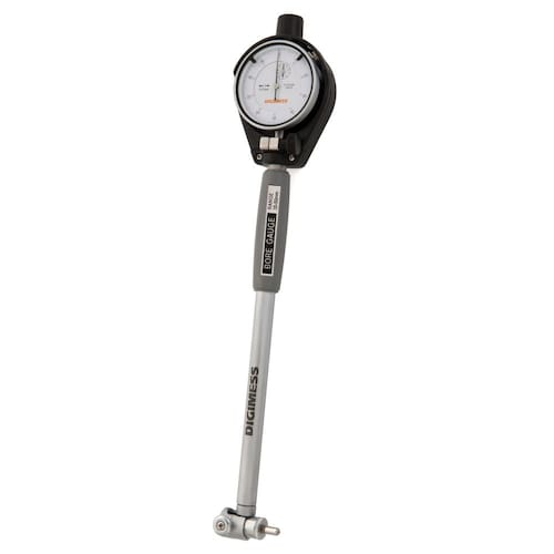 Comparador de Diâmetros Interno Capacidade 3550mm Digimess 130.560 Para medição e comparação de diâmetros internos e ovalização Batentes intercambiáveis com fixação através de rosca e regulagem por espaçadores para modelos de 1035mm Batentes intercambiáveis com regulagem através de rosca para modelos de 35450mm Guia para ajuste radial da posição de medição Pontas de contato esféricas em metal duro exceto para a capacidade de 610mm, em aço temperado Com protetor termoisolante Exatidão de 0,010mm graduação de 0,01mm e de 0,005mm graduação de 0,001mm Relógio comparador analógico, com marcadores de tolerância e trava do aro Protetor plástico para o relógio comparador Ean: 7899953345008