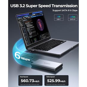 - Transmissão de supervelocidade de 6 Gbps: equipado com chip SuperSpeed de 10 Gbps, o gabinete SSD de 2,5 suporta totalmente a taxa de transmissão maximizada SATA III de 6 Gbps. Suportado pelo protocolo de transmissão acelerada UASP, obtém velocidades 70% mais rápidas do que o USB 3.0 convencional. Você pode transferir arquivos de 1 GB em segundos