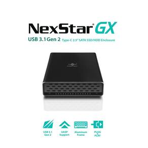Compartimento SSD/HDD SATA Vantec NexStar Gx USB 3.1 Gen 2 tipo C de 2,5” para unidade de 9,5 mm e 7 mm de altura; vem com cabo C a C e C a A; caixa de alumínio; (NST-271C31-BK), preto
