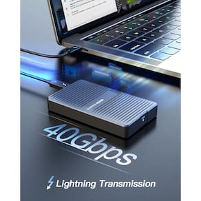 Inateck Gabinete de alumínio SSD M.2 NVMe de 40 Gbps, gabinete de disco rígido externo USB4.0/Thunderbolt 3/4, sem necessidade de instalação de ferramentas, suporta SSDs 2280, M-Key, FE2029 - Compatibilidade: O gabinete externo ssd é compatível com SSDs NVMe M.2 no tamanho 2280, suportando uma capacidade máxima de 8 TB. Observação: Compatível apenas com M-Key - Velocidade de transferência de relâmpago: usando chips de alta qualidade JHL7440+RTL9210B, a velocidade de transmissão é mais estável. O NVMe encloure utilizando interface USB4/TBT4, equipado com protocolo USB4.0, este gabinete suporta uma taxa de transferência superior de 40 Gbps e velocidades de leitura/gravação de até 2700 MB/s. O gabinete SSD também suporta saída de vídeo de 8 K a 60 Hz. Compatível com todos os dispositivos Thunderbolt 3/4 e compatível com USB 3.2/3.1/3.0/2.0 - Design abrangente de dissipação de calor: revestimento externo de liga de alumínio e silicone térmico interno garantem dissipação de calor oportuna e transmissão estável, protegendo o disco rígido e prolongando sua vida útil - Extremamente fácil de usar: o gabinete m.2 possui um design magnético flip-open sem necessidade de ferramentas para instalação. Plug and Play para facilitar o uso. Compatível com versões Windows 8/10/11, Linux, macOS (10 e acima). Além disso, vem com um cabo de dados Thunderbolt 4 de 50 cm - Compacto e portátil: gabinete SSD M.2 NVMe com dimensões de 10 x 6 x 1,4 cm e pesando 131,8 g, é convenientemente portátil e pode ser transportado em um bolso, bolsa de laptop ou pasta para uso em movimento a qualquer hora, em qualquer lugar