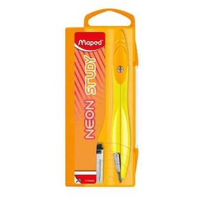 O compasso Metal Study Neon da Maped combina resistência, precisão e estilo para acompanhar estudantes em atividades escolares e de desenho técnico. Produzido em metal de alta durabilidade, oferece maior estabilidade e segurança no traçado de círculos e arcos. Estojo resistente, funcional e estiloso, maior proteção e régua integrada na lateral.