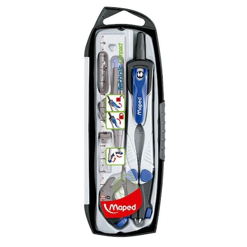 Compasso em metal, têcnico e tradicional. Cabeça ergonômica que facilita o manuseio. Pernas dobráveis, armazenamento seguro e compacto.