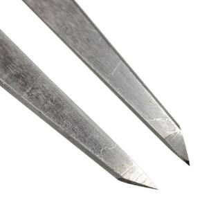 - Compasso Reto com ponta para medir, riscar círculos, marcar pontos para traçar linhas paralelas em superfícies metálicas, entre outras funções.