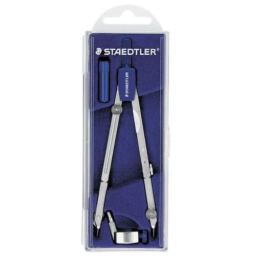 Compasso Staedtler Mars Basic Com Barra De Extensão 554Compasso de precisão com cabeça de fricção para ajuste preciso e suave do raio, braço articulável, barra alongadora ou prolongadora e estojo de plástico com tampa transparente articulada. -compasso de precisão com cabeça de fricção para configuração precisa do raio -corpo de metal e plástico resistente -barra alongadora ou prolongadora -possui agulha permutável -adaptador universal -círculo máximo aproximado: Ø360 mm -comprimento 154 mm -estojo com tampa articulada -referência: 554