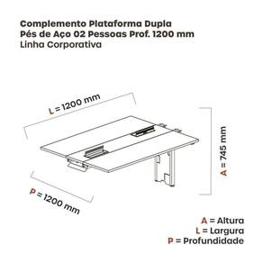 Complemento de Mesa Plataforma para Coworking para 2 Péssoas 120X120 Preto/Grafito