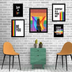 Composição 5 quadros lgbt - bandeira Moldura: madeira branca Informações do produto tire todas as suas dúvidas no descritivo abaixo: decoração para quarto, sala, cozinha, escritório, área gourmet e muito mais. Chega de paredes vazias medidas - kit composto por 5 quadros, sendo 2 quadros com medida 18x24cm, 2 quadros com 24x33cm e 1 quadro com medida 33x45cm. Material do papel - papel fotográfico brilhante de altíssima resolução acabamento - todos os quadros são acompanhados de uma película de acetato para proteção da imagem. - os quadros são embalados de forma segura com plástico bolha com camada dupla de acordo com o tamanho dos quadros. Garantia - garantia de 3 meses. Meu quadro chegou. Como posso fixá-lo Você precisa apenas de um martelo e um prego, pois os quadros já vão acompanhados de penduradores. Esta é a forma mais indicada. Caso prefira, você pode utilizar uma fita dupla face neste caso, sugerimos de alta qualidade para evitar que descole e seu quadro caia . Como posso limpar meu quadro A limpeza é feita como um móvel comum da sua casa. Apenas um pano seco ou espanador são suficientes para tal