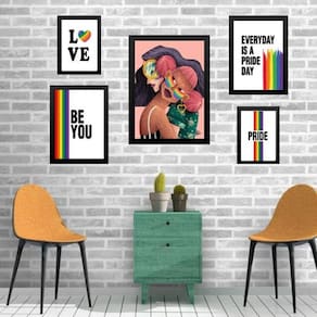 Composição 5 quadros lgbt - lésbicas - com vidro Moldura: madeira preta Informações do produto tire todas as suas dúvidas no descritivo abaixo: decoração para quarto, sala, cozinha, escritório, área gourmet e muito mais. Chega de paredes vazias medidas - kit composto por 5 quadros, sendo 2 quadros com medida 18x24cm, 2 quadros com 24x33cm e 1 quadro com medida 33x45cm. Material do papel - papel fotográfico brilhante de altíssima resolução acabamento - todos os quadros são acompanhados de vidro para proteção da imagem. - moldura em madeira maciça na cor preta ou branca conforme produto escolhido e pendurador . - os quadros são embalados de forma segura com plástico bolha com camada dupla de acordo com o tamanho dos quadros. Garantia - garantia de 3 meses. Meu quadro chegou. Como posso fixá-lo Você precisa apenas de um martelo e um prego, pois os quadros já vão acompanhados de penduradores. Esta é a forma mais indicada. Como posso limpar meu quadro A limpeza é feita como um móvel comum da sua casa. Apenas um pano seco ou espanador são suficientes para tal