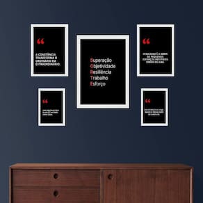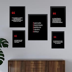 Composição 5 quadros motivacionais fórmula sucesso - com vidro Cor: moldura preta Informações do produto tire todas as suas dúvidas no descritivo abaixo: decoração para quarto, sala, cozinha, escritório, área gourmet e muito mais. Chega de paredes vazias medidas - kit composto por 5 quadros, sendo 2 quadros com medida 18x24cm, 2 quadros com 24x33cm e 1 quadro com medida 33x45cm. Material do papel - papel fotográfico brilhante de altíssima resolução acabamento - todos os quadros são acompanhados de vidro para proteção da imagem. - moldura em madeira maciça na cor preta ou branca conforme produto escolhido e pendurador . - os quadros são embalados de forma segura com plástico bolha com camada dupla de acordo com o tamanho dos quadros. - de 3 meses. Meu quadro chegou. Como posso fixá-lo Você precisa apenas de um martelo e um prego, pois os quadros já vão acompanhados de penduradores. Esta é a forma mais indicada. Como posso limpar meu quadro A limpeza é feita como um móvel comum da sua casa. Apenas um pano seco ou espanador são suficientes para tal