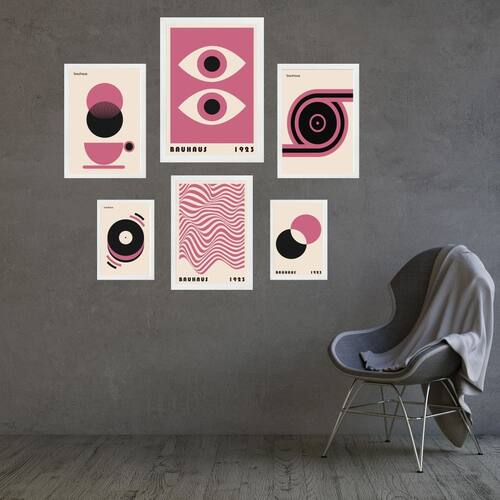 Composição 6 quadros artes bauhaus rosa e bege Cor: moldura branca Informações do produto tire todas as suas dúvidas no descritivo abaixo: decoração para quarto, sala, cozinha, escritório, área gourmet e muito mais. Chega de paredes vazias medidas - kit composto por 6 quadros, sendo 2 quadros com medida 18x24cm, 3 quadros com 24x33cm e 1 quadro com medida 33x45cm. Material do papel - papel fotográfico brilhante de altíssima resolução acabamento - todos os quadros são acompanhados de uma película de acetato para proteção da imagem. - os quadros são embalados de forma segura com plástico bolha com camada dupla de acordo com o tamanho dos quadros. - de 3 meses. Meu quadro chegou. Como posso fixá-lo Você precisa apenas de um martelo e um prego, pois os quadros já vão acompanhados de penduradores. Esta é a forma mais indicada. Caso prefira, você pode utilizar uma fita dupla face neste caso, sugerimos de alta qualidade para evitar que descole e seu quadro caia . Como posso limpar meu quadro A limpeza é feita como um móvel comum da sua casa. Apenas um pano seco ou espanador são suficientes para tal