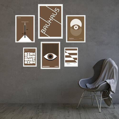 Composição 6 quadros bauhaus marrom e branco Cor: moldura preta Informações do produto tire todas as suas dúvidas no descritivo abaixo: decoração para quarto, sala, cozinha, escritório, área gourmet e muito mais. Chega de paredes vazias medidas - kit composto por 6 quadros, sendo 2 quadros com medida 18x24cm, 3 quadros com 24x33cm e 1 quadro com medida 33x45cm. Material do papel - papel fotográfico brilhante de altíssima resolução acabamento - todos os quadros são acompanhados de uma película de acetato para proteção da imagem. - os quadros são embalados de forma segura com plástico bolha com camada dupla de acordo com o tamanho dos quadros. - de 3 meses. Meu quadro chegou. Como posso fixá-lo Você precisa apenas de um martelo e um prego, pois os quadros já vão acompanhados de penduradores. Esta é a forma mais indicada. Caso prefira, você pode utilizar uma fita dupla face neste caso, sugerimos de alta qualidade para evitar que descole e seu quadro caia . Como posso limpar meu quadro A limpeza é feita como um móvel comum da sua casa. Apenas um pano seco ou espanador são suficientes para tal