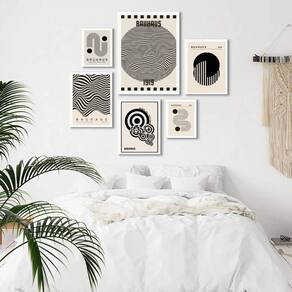 Composição 6 quadros bauhaus preto e branco Moldura: madeira preta Informações do produto tire todas as suas dúvidas no descritivo abaixo: decoração para quarto, sala, cozinha, escritório, área gourmet e muito mais. Chega de paredes vazias medidas - kit composto por 6 quadros, sendo 2 quadros com medida 18x24cm, 3 quadros com 24x33cm e 1 quadro com medida 33x45cm. Material do papel - papel fotográfico brilhante de altíssima resolução acabamento - todos os quadros são acompanhados de uma película de acetato para proteção da imagem. - os quadros são embalados de forma segura com plástico bolha com camada dupla de acordo com o tamanho dos quadros. Garantia - garantia de 3 meses. Meu quadro chegou. Como posso fixá-lo Você precisa apenas de um martelo e um prego, pois os quadros já vão acompanhados de penduradores. Esta é a forma mais indicada. Caso prefira, você pode utilizar uma fita dupla face neste caso, sugerimos de alta qualidade para evitar que descole e seu quadro caia . Como posso limpar meu quadro A limpeza é feita como um móvel comum da sua casa. Apenas um pano seco ou espanador são suficientes para tal